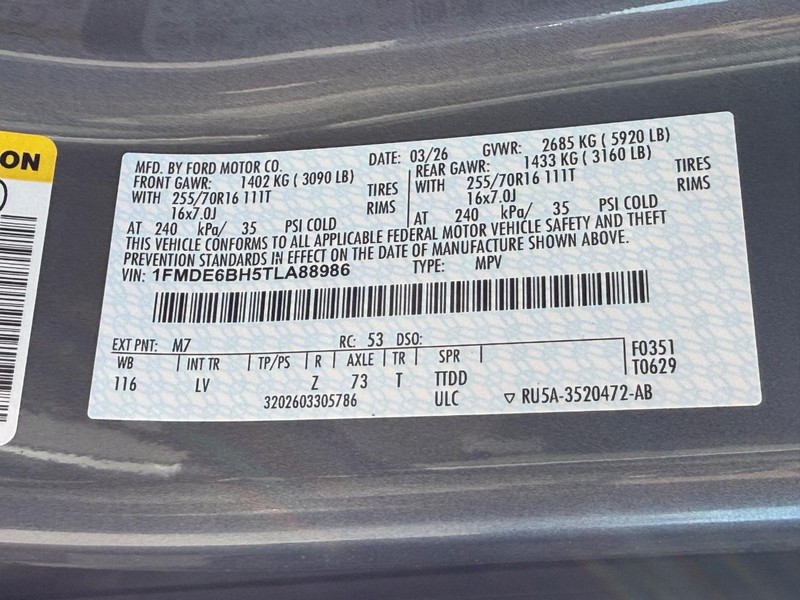 - VIN : 1FMDE6BH5TLA88986