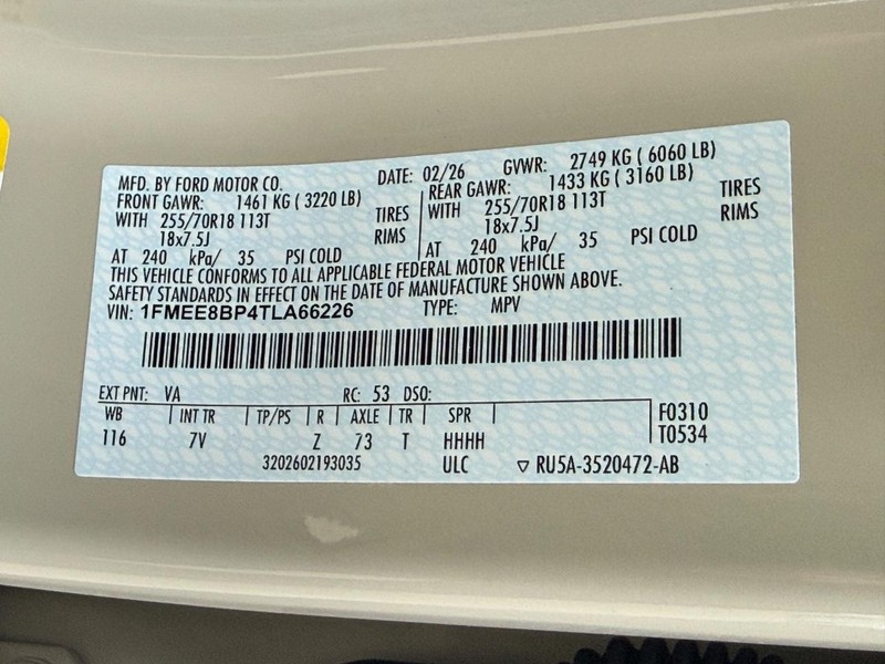 - VIN : 1FMEE8BP4TLA66226