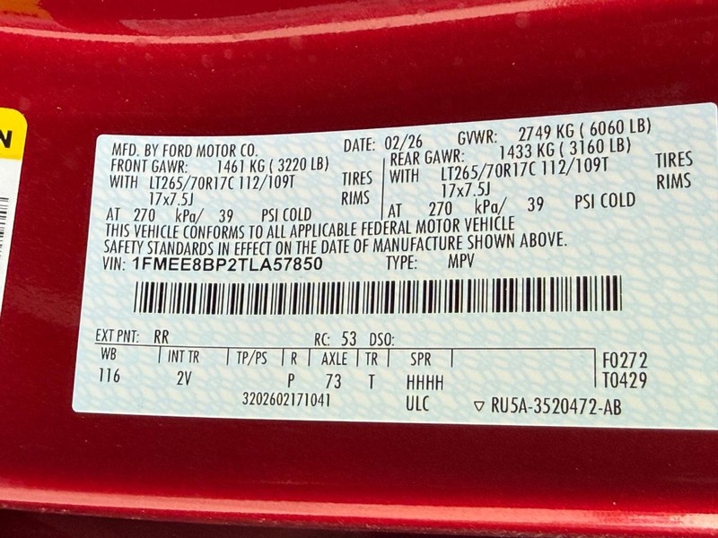 - VIN : 1FMEE8BP2TLA57850