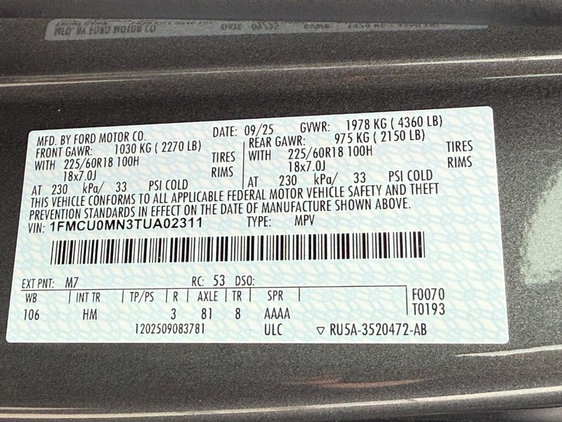 - VIN : 1FMCU0MN3TUA02311