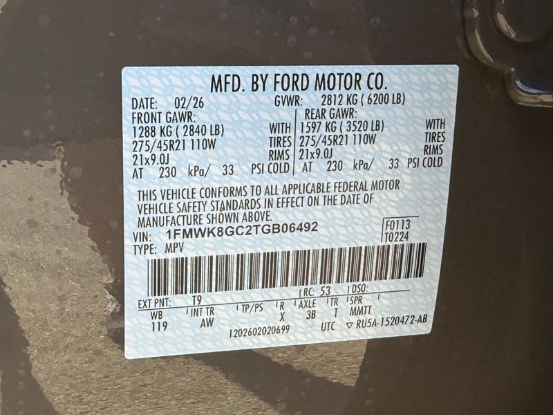 - VIN : 1FMWK8GC2TGB06492