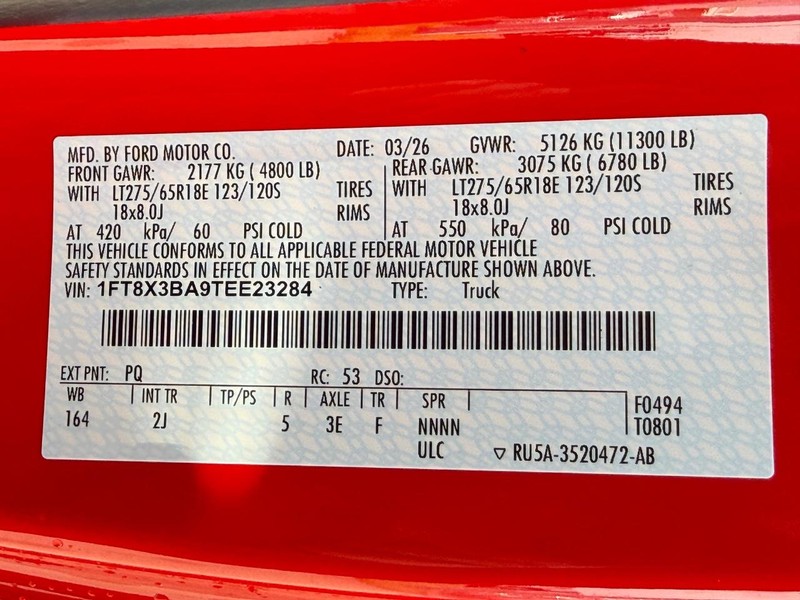 - VIN : 1FT8X3BA9TEE23284